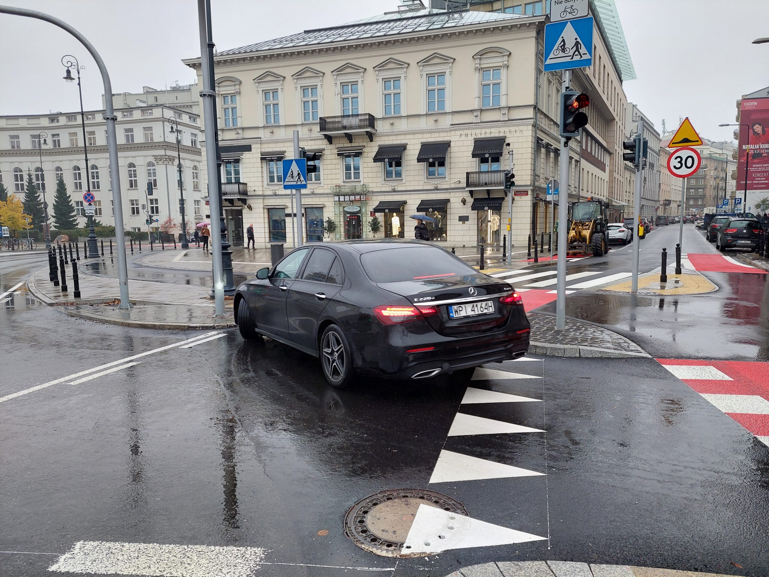 Przykłady można by mnożyć – „esowanie” na Grochowskiej, bo ponoć jazda zakosami spowolni ruch i zapewni bezpieczeństwo, albo ul. Świętokrzyska, którą projektował ktoś w stanie upojenia alkoholowego – inaczej nie da się bowiem wytłumaczyć tych zakrętów, zakosów i zmian organizacji ruchu. Ostatnio pojawiło się kilka nowych perełek, z których na pozycję nr 1 wysuwa się skręt w prawo z Hożej w Mokotowską (na placu Trzech Krzyży). Zgodnie z zasadami sztuki zakręty profiluje się tak, aby manewr można było wykonać bezpiecznie i wygodnie – wprowadza się łagodny kąt skrętu i odpowiednio dużo miejsca aby manewr był wykonalny. Tak się, w każdym razie, robi w całym cywilizowanym świecie, ale nie w Warszawie.