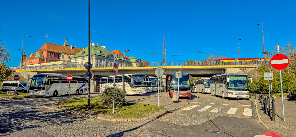 A teraz jak to wygląda w Warszawie? Na terenie miasta są nieliczne miejsca postojowe dla autokarów w kilku strategicznych lokalizacjach: przy Parku Fontann na Wybrzeżu Gdańskim, na Placu Defilad (tam jest parking przeznaczony dla samochodów osobowych i autokarów, brak jest jednak wyznaczonych stanowisk dla autokarów, zaś większa ilość stanowisk może zostać przygotowana po wcześniejszym uzgodnieniu telefonicznym), na ul. Myśliwieckiej czyli przy Łazienkach, pod wiaduktem Mostu Śląsko-Dąbrowskiego czyli na Mariensztacie (gdzie zapotrzebowanie na miejsca jest wielokrotnie większe). Jest też kilka miejsc na ul. Świętojerskiej, pod Muzeum Narodowym, na pl. Teatralnym, na Anielewicza przy Muzeum POLIN, na Bonifraterskiej przy Stadionie Polonii, na Matejki przy Sejmie, na pl. Grzybowskim (przy Twardej), przy CNK, na Targowej przy Muzeum Pragi, na pl. Piłsudskiego i między Żurawią a Nowogrodzką. Każda z tych lokalizacji to 2-3 miejsca (maksymalnie 15), zaś zatrzymanie się tam w sezonie graniczy z cudem. Świetnym przykładem jest parking pod wiaduktem Mostu Śląsko-Dąbrowskiego, z którego autokary się wręcz wylewają oraz CNK – autokary turystyczne parkują gdzie popadnie na całym Powiślu.